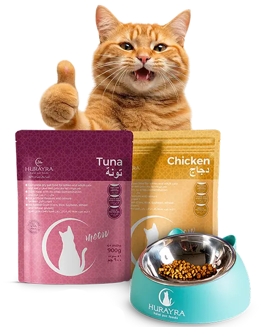 Hurayra Pet Foods produces Halal-certified dry cat food. We do not sell wet food or pouch products.