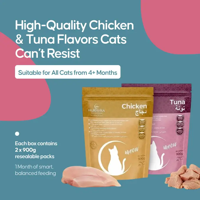 For ages 4+ months. Feeding amounts may vary based on your cat’s age, weight and activity level. Transitioning your cat to Hurayra Pet Food may take a while. Try to adjust portions over a period of 7 to 10 days for a smooth transition.